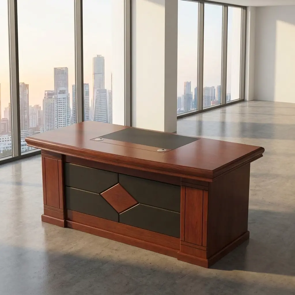 Designed for efficiency, the desk often includes built-in storage options such as drawers, allowing you to keep files, stationery, and important items neatly arranged and within easy reach.