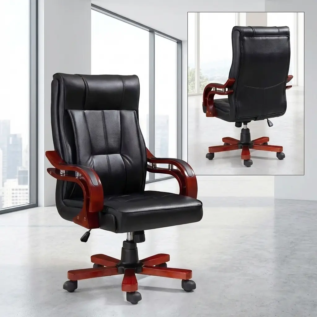 The chair features a high-back ergonomic design that provides full support for the head, neck, shoulders, and lower back, promoting proper posture and reducing fatigue during long working hours.