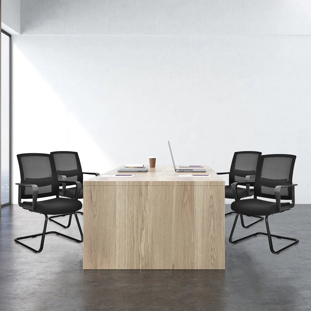 The Ergonomic Office Guest Chair offers a comfortable seat with a concave-down design, high-density sponge padding, and adjustable lumbar support for a customized fit. Its heavy-duty sled-shaped steel base ensures stability and durability, further enhanced by five non-slip pads underneath. The breathable mesh back promotes ventilation, preventing discomfort and sweating during extended periods of sitting. Weighing just 20 pounds, the chair is easy to maneuver and seamlessly adapts to various modern office environments. It serves as a versatile option for conference rooms, reception areas, and boardrooms, with its sleek black minimalist design complementing any professional space. The Ergonomic Office Guest Chair prioritizes a comfortable and ergonomic seating experience, ensuring optimal support and productivity.