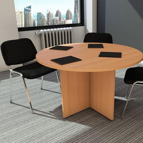 The table features a spacious round tabletop, providing ample space for laptops, documents, and office accessories. Its circular design ensures all participants have equal visibility and access, promoting interactive and productive meetings.